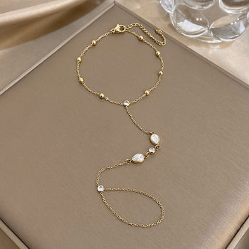Stylish Waterdrop Zircon Beads Chain Bracelet for Women Link Connected Stainless Steel Finger Ring Bracelets Jewelry Gifts