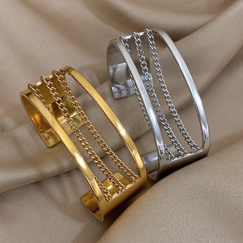Fashion Gold Silver Color Stainless Steel Cuff Bracelets for Women Chunky Multilayer Thick Chain Wide Bangle Waterproof Jewelry