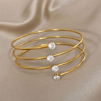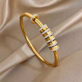 Glossy Zircon Spiral Cuff Bangle Bracelets for Women Elegant Gold Plated Stainless Steel Wide Wrist Bracelet Party Jewelry Gifts
