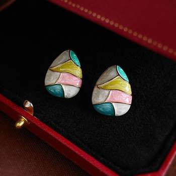Color Enamel Oil Water Droplet Earrings for Women Fashion Irregular Geometry Patchwork Stud Earrings Party Elegant Jewelry Gift