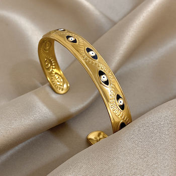 Vintage Enamel Evil Eye Wide Bracelet for Women Men Chunky Gold Plated Stainless Steel Cuff Bangle Bracelets Waterproof Jewelry