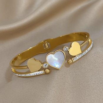 Chic Stainless Steel Cuff Bracelet for Women Girls Cute Stylish Shell Heart Micro Inlaid Zircon Bangles Charm Jewelry Gifts