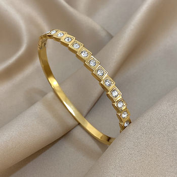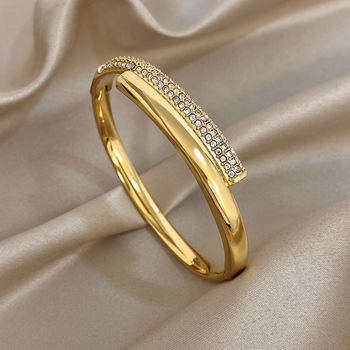 Exquisite Geometric Rhinestone Smooth Bracelet for Women Trendy Gold Plated Stainless Steel Cuff Bangle Bracelets Jewelry Gifts