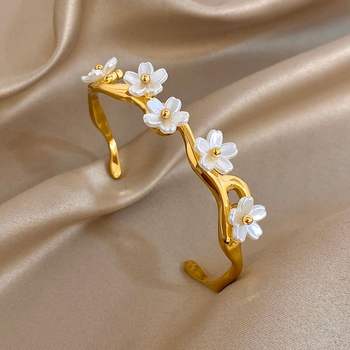 Exquisite Shell Flower Branch Cuff Bangle for Women Irregular Gold Plated Stainless Steel Wrist Bracelets Valentine’s Day Gifts