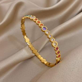 Colorful Zircon Round Beads Stainless Steel Bracelets for Women Trendy Gold Plated Stacked Cuff Bangle Waterproof Jewelry