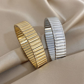 Chunky Gold Silver Color Stainless Steel Elastic Bracelet for Women Men Adjustable Watchband Bangle Bracelets Waterproof Jewelry