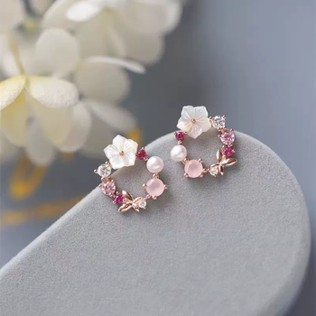 Trendy Elegant Circle Flower Stud Earrings For Women Fashion Enamel Oil Colorful Rhinestone Earring Sweet Jewelry Girls Gifts