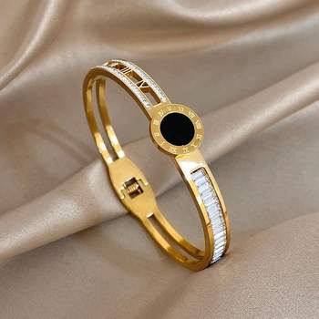 Charm Roman Numerals Stainless Steel Bracelet Bangle For Women Brand Design 18K Gold Plated Lover Cuff Bracelets Wrist Jewelry