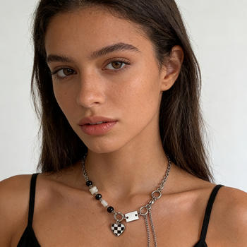 Black and White Chessboard Heart Shape Necklace Women’s Hip Hop Sweater Chain Autumn Winter Fashion Accessory Charm Jewerly Gift