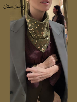 Vintage Suede Diamond Scarf Women Fashion Green Sort Lady New Casual Daily Street Luxury Scarves 2026