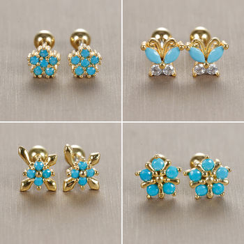 4PCS Stainless Zircon Little Butterfly Crown Ear Stud Earrings Set for Women Korean Crystal Helix Cartilage Piercing Jewelry