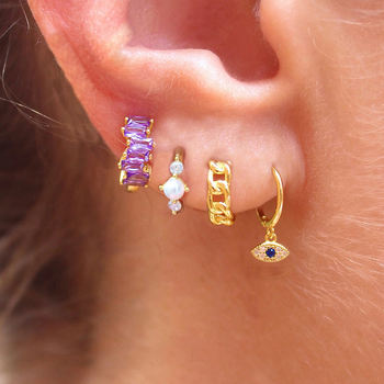 4PCS Stainless Steel Zircon Turkey Evil Eye Hoop Earrings Set for Women Simple Elegant Pearl Piercing Earring Wedding Jewelry