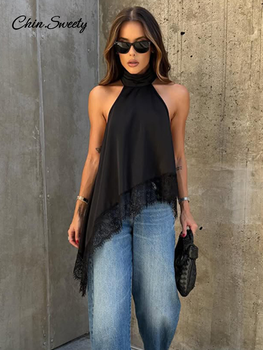 Elegant Asymmetry Halter Top Women Lace Patchwork Satin Irregular Hem Sleeveless Vests Lady New Fashion Street Summer Tops 2026
