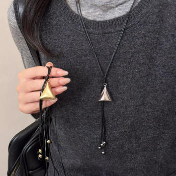 New Simple Silver Triangle Pendant Tassel Necklace for Women Autumn Winter Long Pull Sweater Chain Charm Jewerly Daily Accessory