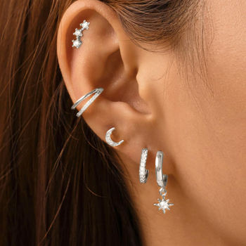 5PCS New Stainless Steel Moon Zircon Hoop Earrings Set for Women 14K Gold Plated Cartilage Piercing Earring Girls Jewelry Gift
