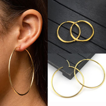 2Pcs Simple Classic Stainless Steel Smooth Big Round Circle Hoop Earrings For Women Huggie Piercing Jewelry 50mm/60mm/70mm