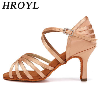 HROYL Latin Dance Shoes for Women High Heels Salsa Ballroom Dancing Sandals for Girls Suede Soft Sole Dropshipping Tango Shoe