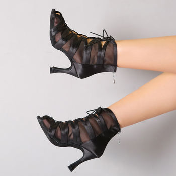 Fish Mouth Sandals Women Latin Dance Shoes Back Zipper Front Lace-up Stiletto Short Dance Boots Jazz Dance High-heeled Shoes