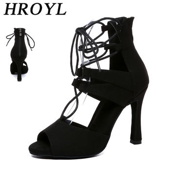 HROYL Suede Latin Dance Shoes High-heeled Indoor Soft-soled Women Dance Shoes Fashion Lace-up High-top Salsa Waltz Jazz Sandals
