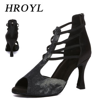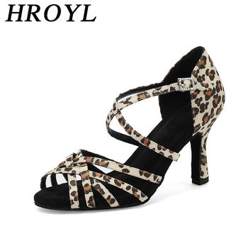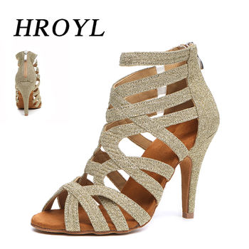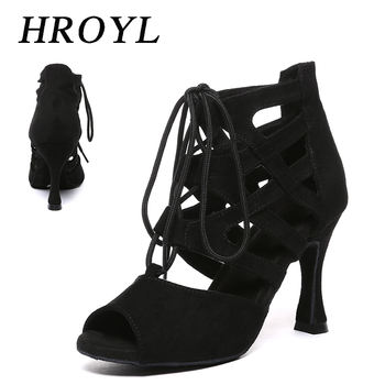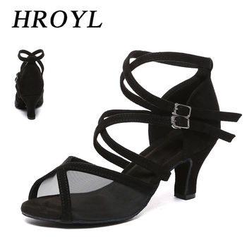 HROYL Latin Dance Shoes for Women High Heels Salsa Ballroom Dancing Sandals for Girls Suede Soft Sole Dropshipping Tango Shoe