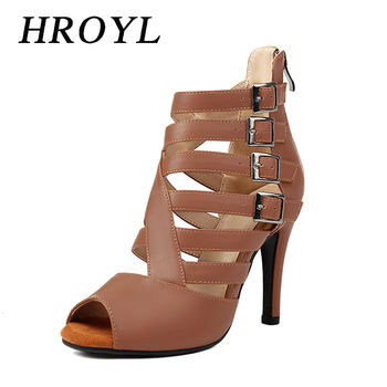 HROYL Large Size Women’s Summer Jazz Dance Boots Matching Belt Buckle Hollow Stiletto Heel Zipper Fish Mouth Dance Shoes