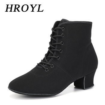 HROYL Elastic Shoelaces Latin Dance Shoes Women Jazz Tango High-top Dance Boots Professional Soft-soled Ballroom Dance Shoes