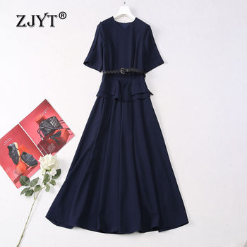 ZJYT Fashion Summer One Piece Dress Women 2025 Elegant Chic Party Midi Dresses Short Sleeved Blue Vestidos Feminino Robes Femme