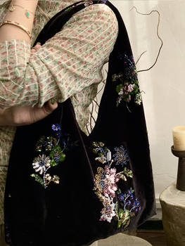 Fashion Velvet Sequin Embroidered Handmade Bag Velvet Crossbody Bag Women Design Sense Atmosphere Match Handbag Tote Bag