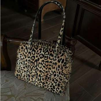 Leopard Women’s Bag Shaping Leather Bag Handbag Women’s Pure Cow Leather Bag Portable Shoulder Crossbody Three-Purpose Hard Bag