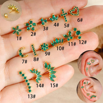 1pc Small Exquisite Stainless Steel Ear Stud Piercing Earrings for Women Green Zircon Charming Moon Eye Crown Jewelry Girl Gift