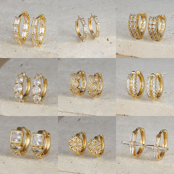 5PCS Stainless Steel Geometry Huggie Hoop Earrings Set Daily Wear Gold Color Zircon Ear Piercing Earring Wedding Jewelry Aretes