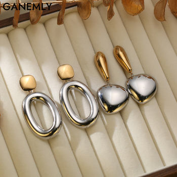 GANEMLY 316L Stainless Steel Geometric Two Color Pendant Earrings For Women Charm Metal Texture Waterproof Ear Dangle Jewelry