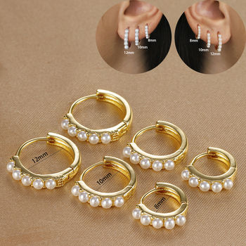 3PCS Stainless Steel Elegant Pearl Hoop Earrings Set for Women 6mm 8mm 10mm Round Circle Huggie Piercing Earrings Trendy Jewelry