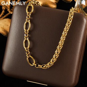 GANEMLY 316L Stainless Steel Asymmetry Chain Necklace For Women Gold Color Thick Chunky Collar Neck Chain Rust Proof Jewelry