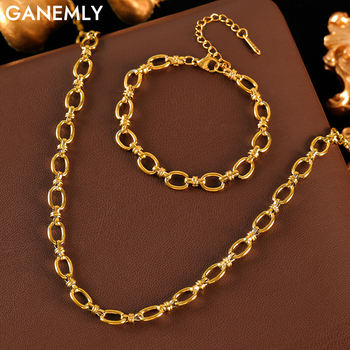 GANEMLY 316L Stainless Steel Metal Chain Necklace Bracelet Set For Women New Trendy Waterproof 18K Gold Plated Jewelry Lady Gift
