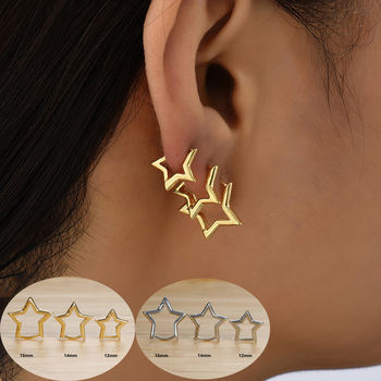 3PCS Vintage Hollow Star Hoop Earrings Set For Women Girl Fashion Simple Punk Stainless Steel Piercing Minimalist Jewelry Aretes