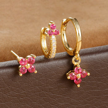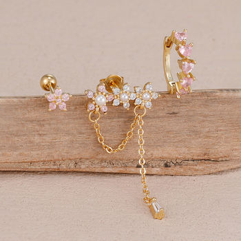 3PCS Stainless Steel Mini Zircon Ear Hoop Earrings Set For Women Huggies Flowers Cartilage Helix Piercing Jewelry Statement Gift
