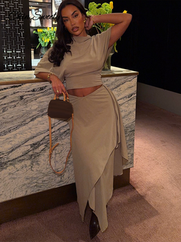 Elegant Irregular Hem Skirt Suit Women Short Sleeve Waist Cinching Cropped Top 2 Pieces Sets Lady New Casual Fashion Outfit 2026