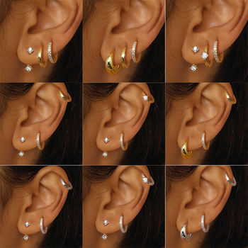 3PCS Hoop Earrings Set for Women Fashion Gold Plated CZ Zircon Female Unique Huggie Piercing Earring Aesthetic Jewelry aretes