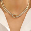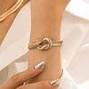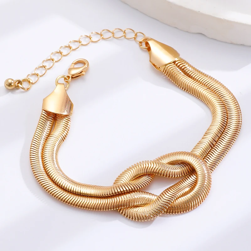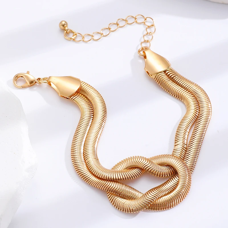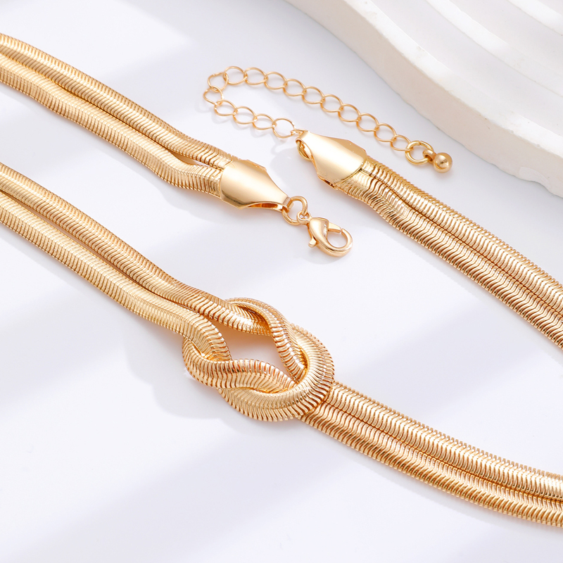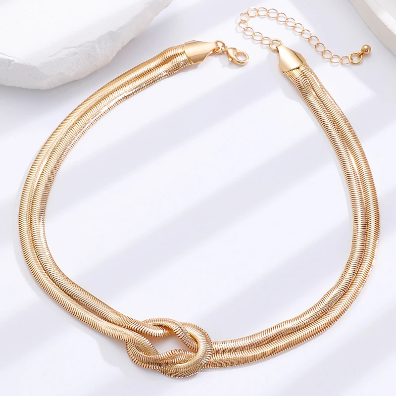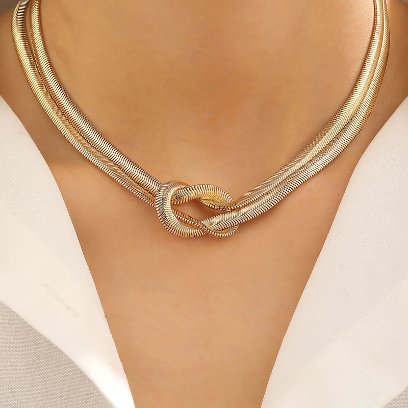 Punk Metal Knot Double Layered Necklace Bracelet Set for Women Hip-Hop Gold Color Wrapped Adjustable Clavicle Chain Jewelry Sets