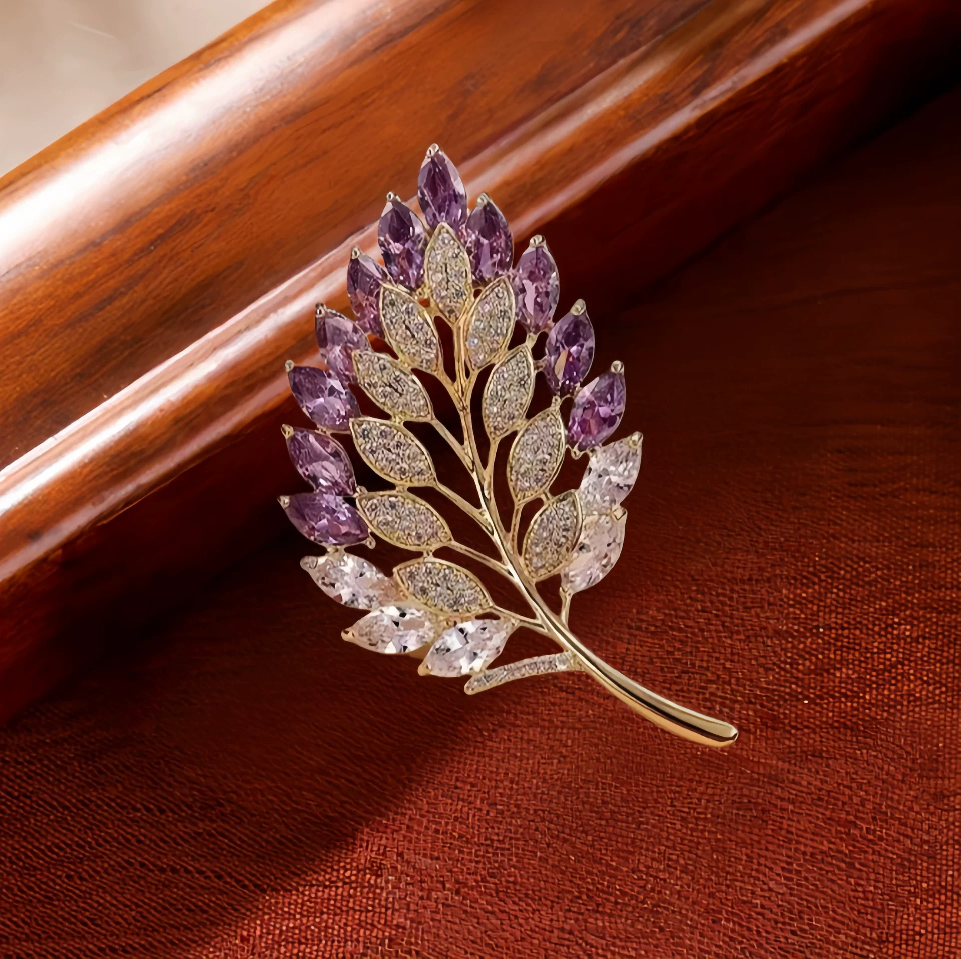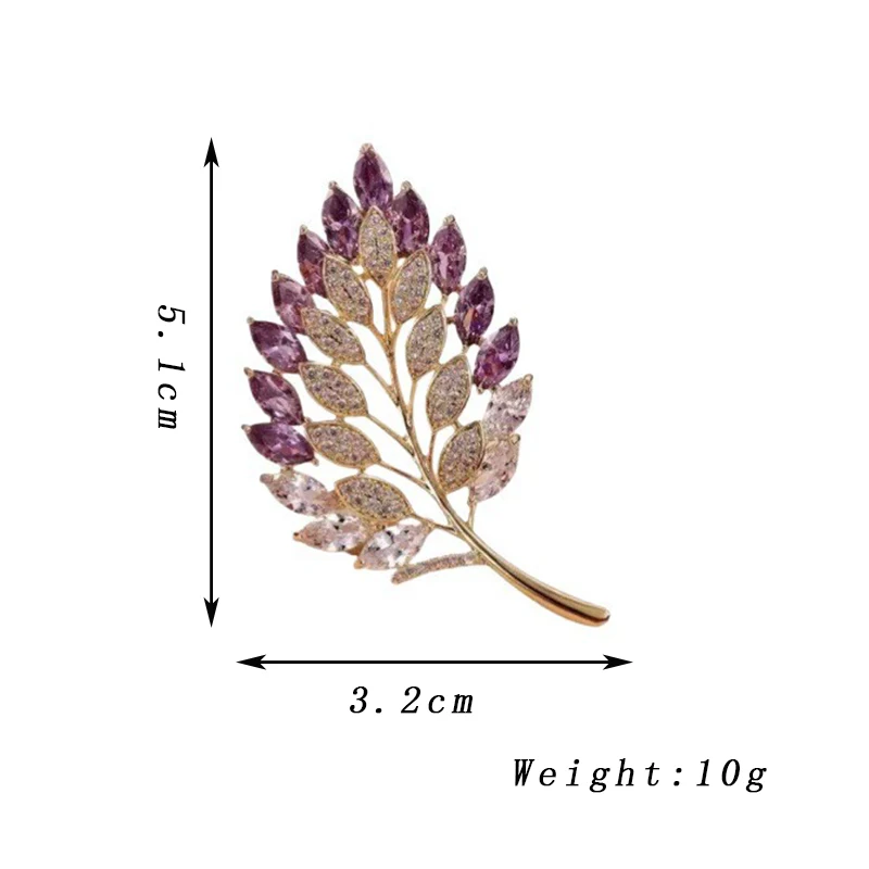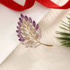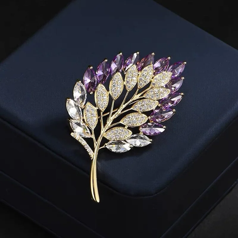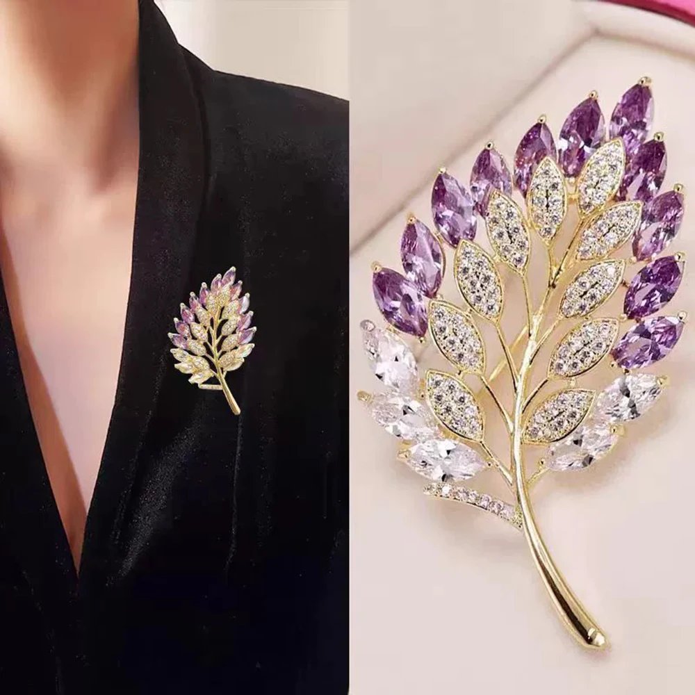 Purple Rhinestones Edge Leaf Brooches for Women Luxury Crystal Wheat Shape Brooch Pin Party Elegant Jewelry Clothing Accessories