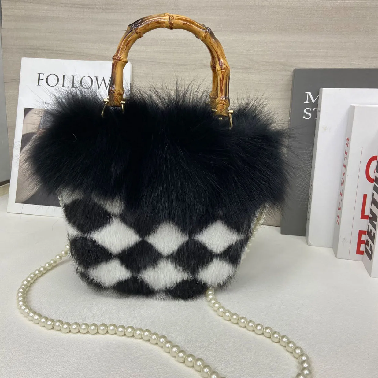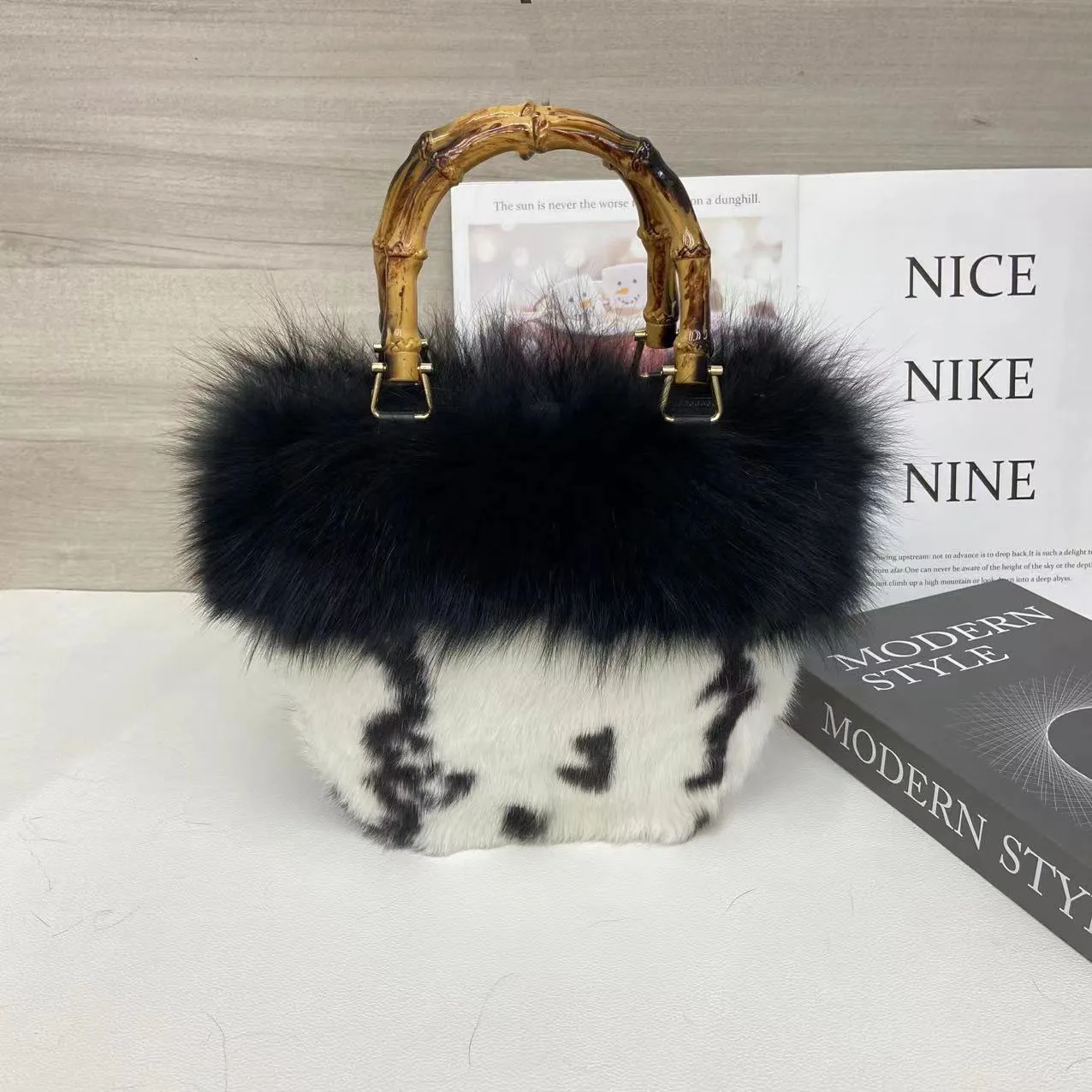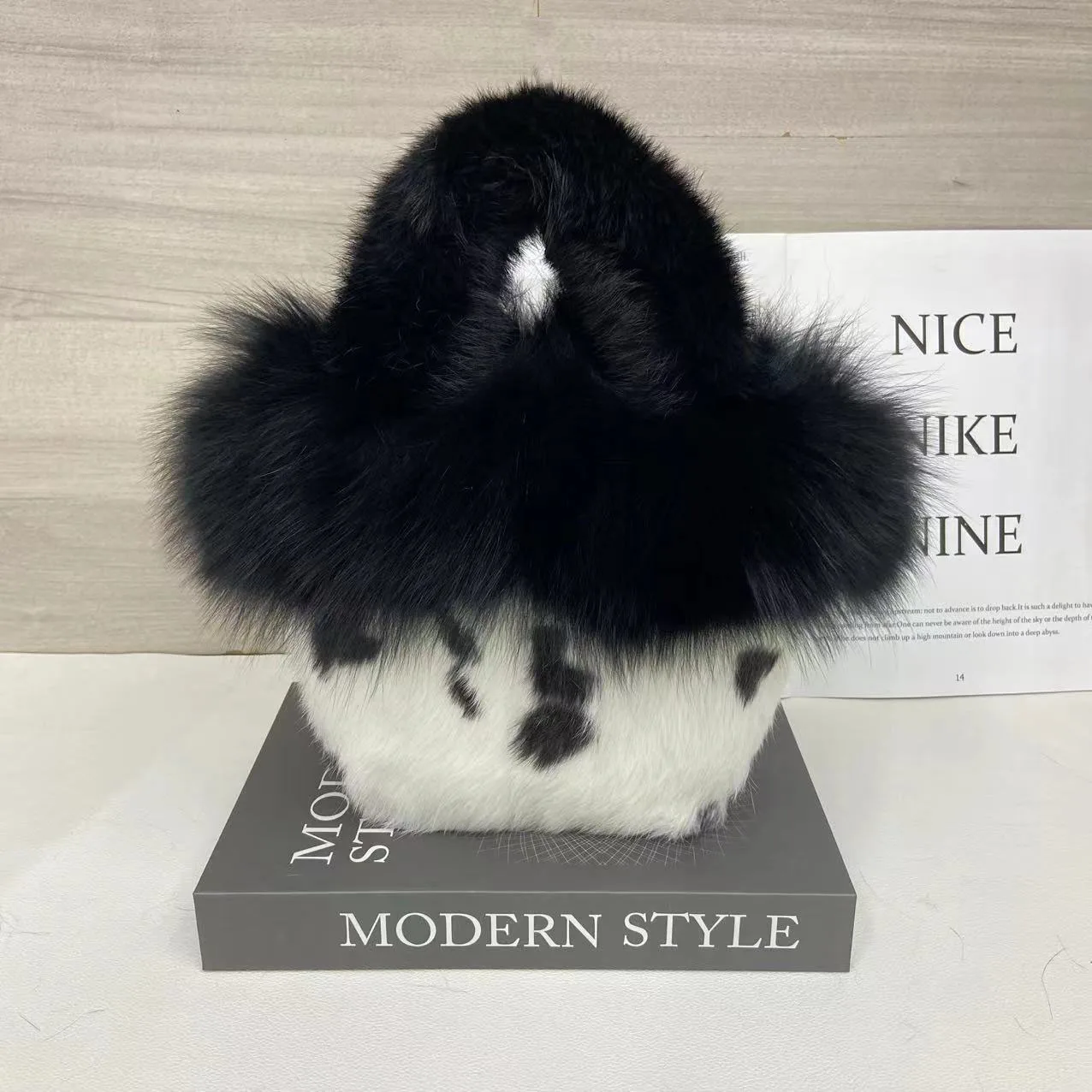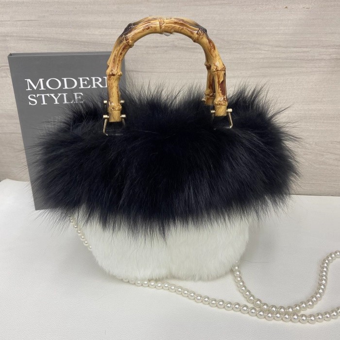 Real Fox Fur Bag Woman Crossbody Bags Ladies Furry Casual Fur Handbag Shoulder Bags Clutch Bag Fuzzy Luxury Evening Party Bag