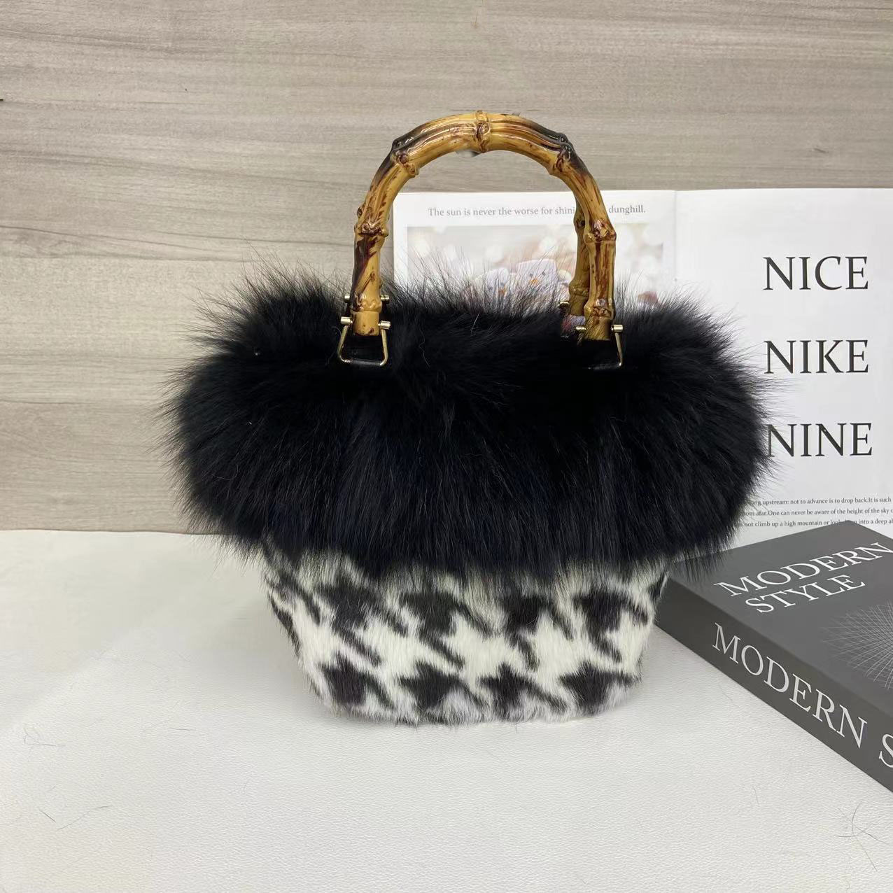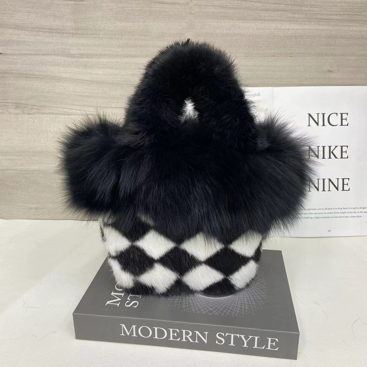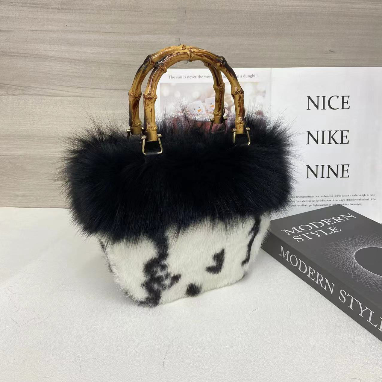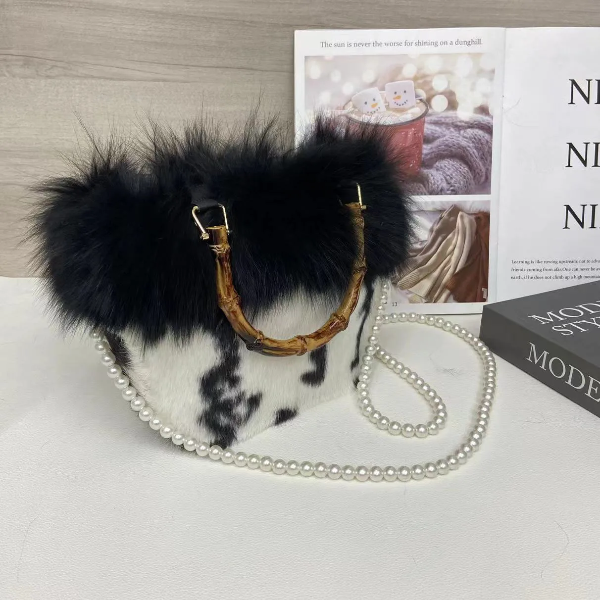 Real Fox Fur Bag Woman Crossbody Bags Ladies Furry Casual Fur Handbag Shoulder Bags Clutch Bag Fuzzy Luxury Evening Party Bag