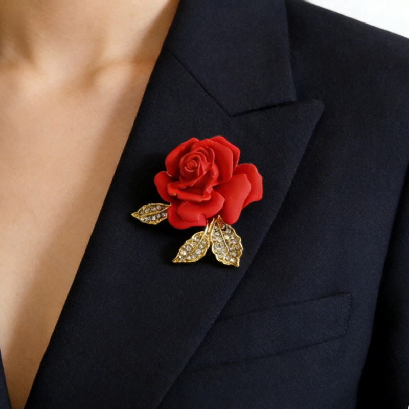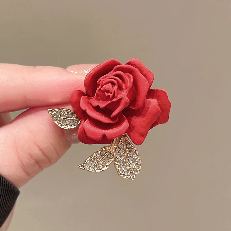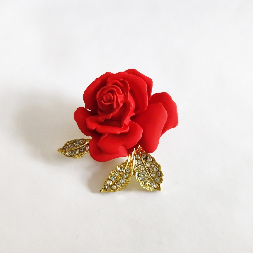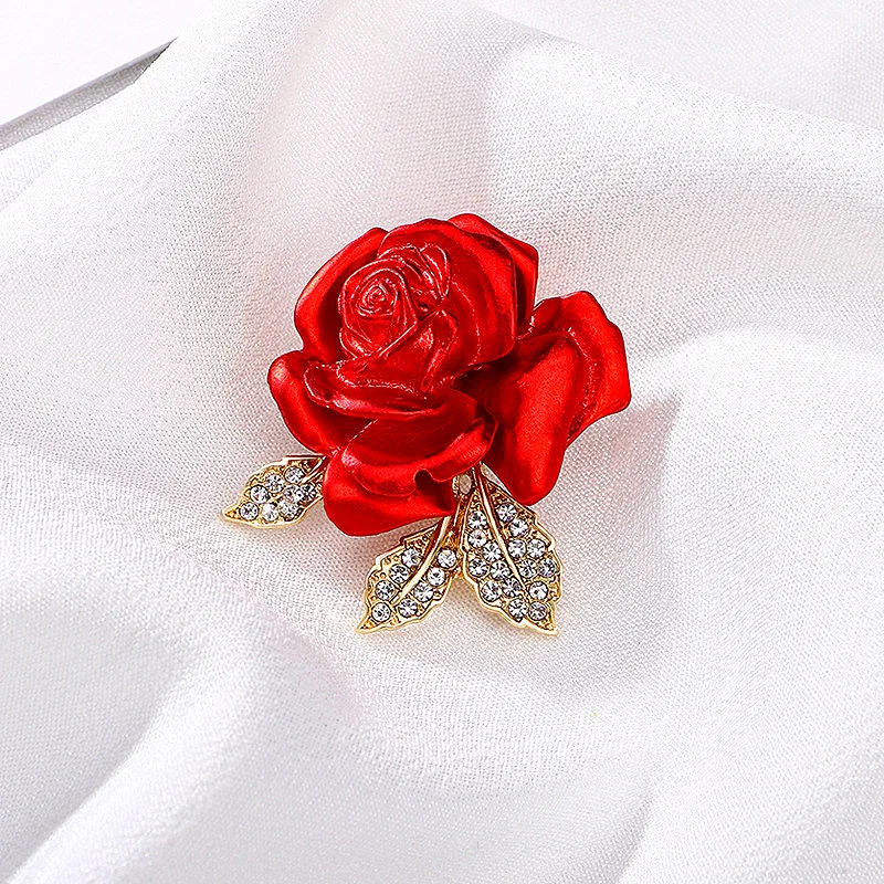 Red Rose Flower Brooches for Women Gold Color Metal Pins Romantic Female Brooch Fashion Jewelry Valentine’s Day Gift for Girls