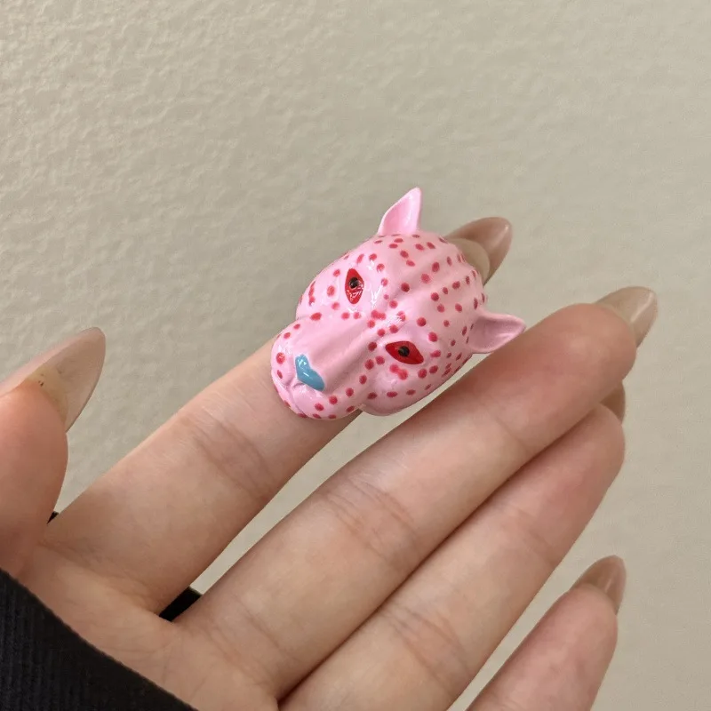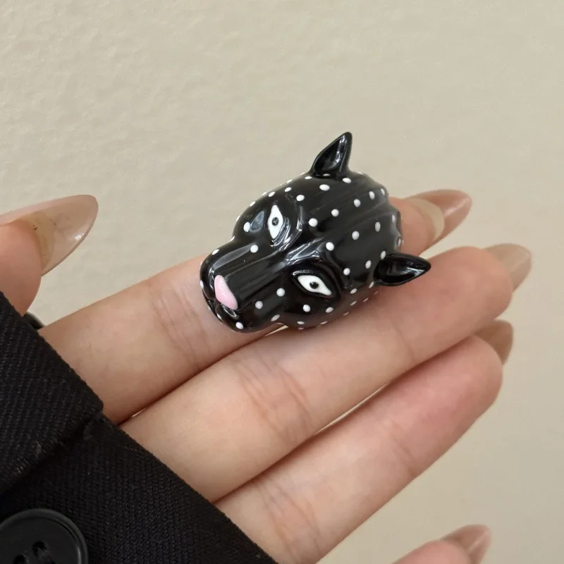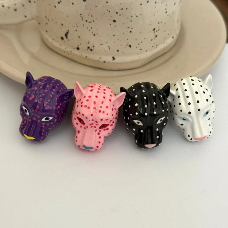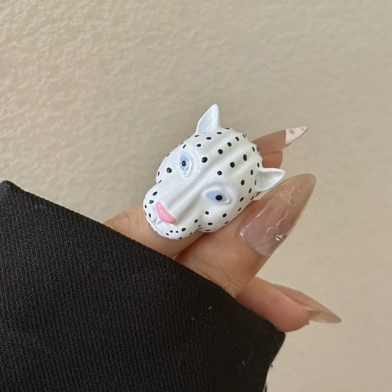 Retro Exaggerated Enamel Leopard Head Open Ring for Women All-match Personality Fashion Trend Daily Accessories Jewelry Gift