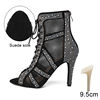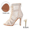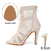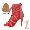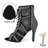 Rhinestone Dance Boots Hollow Fish Mouth Short Dance Boots Women’s Stiletto Heels Latin Dance Shoes Woman Party Jazz Sandals