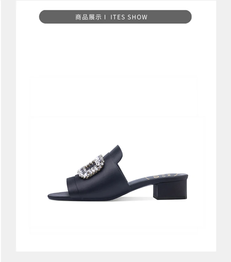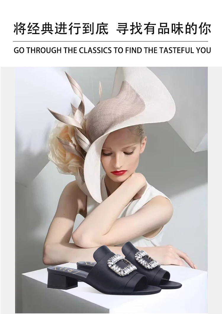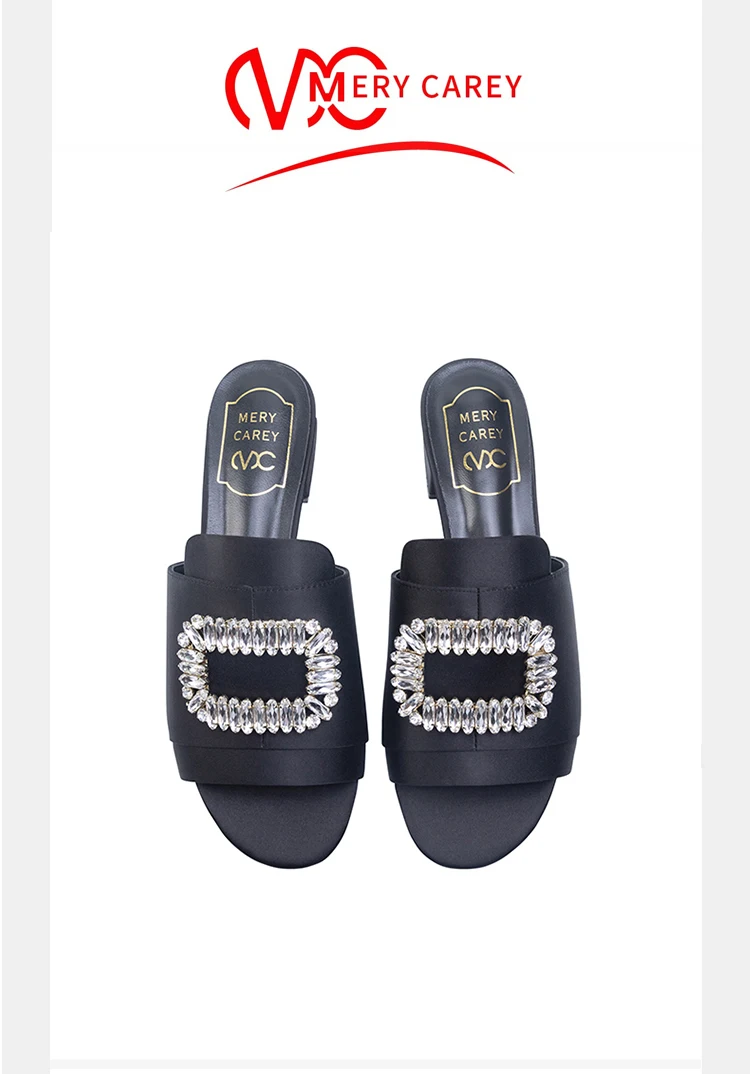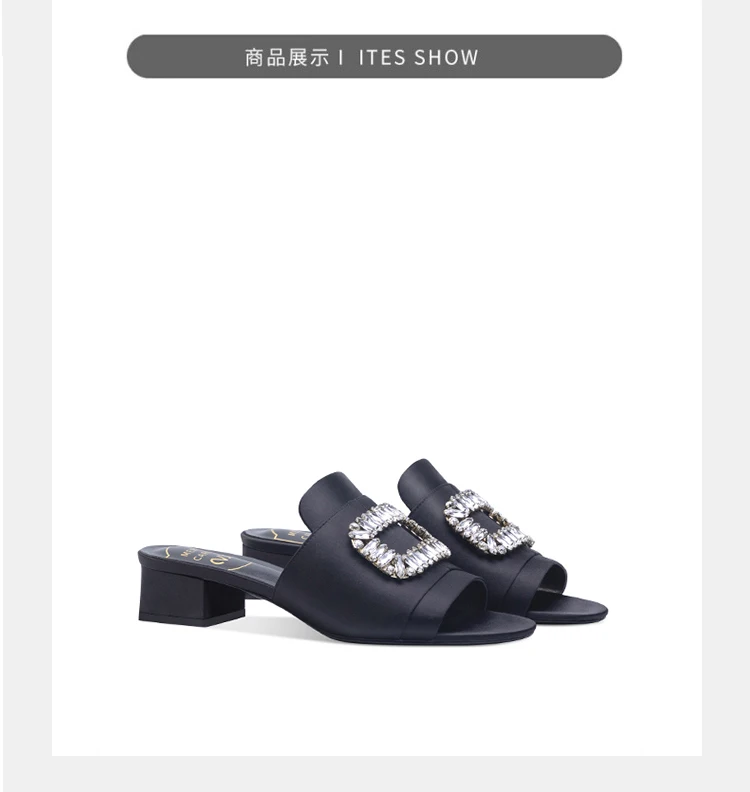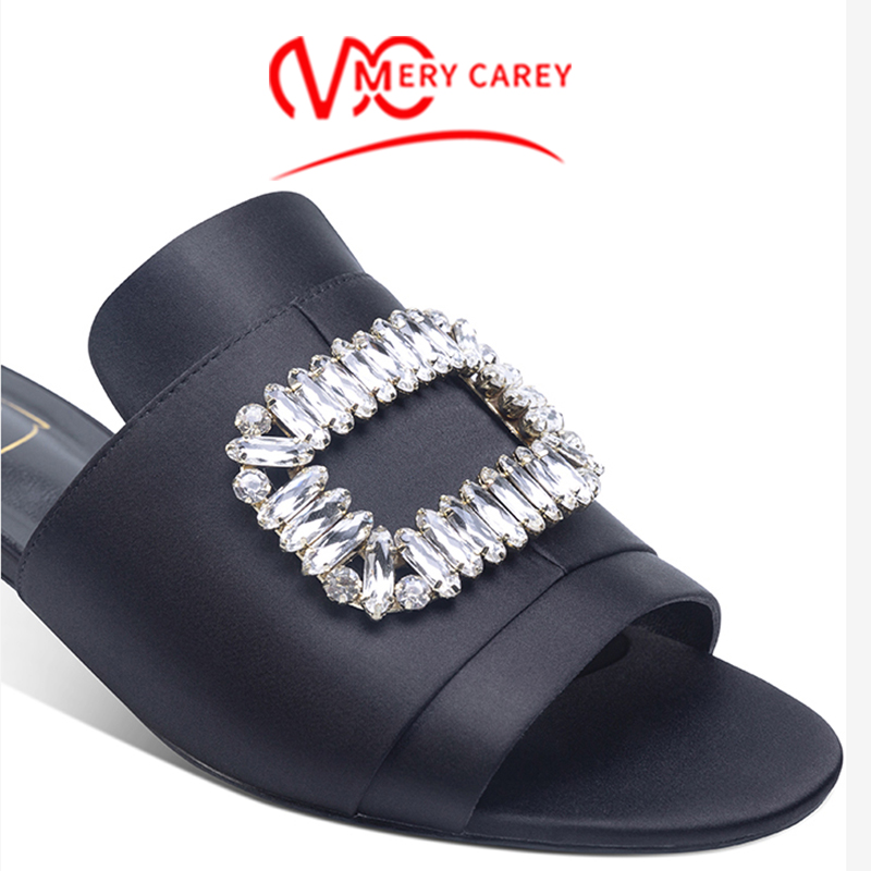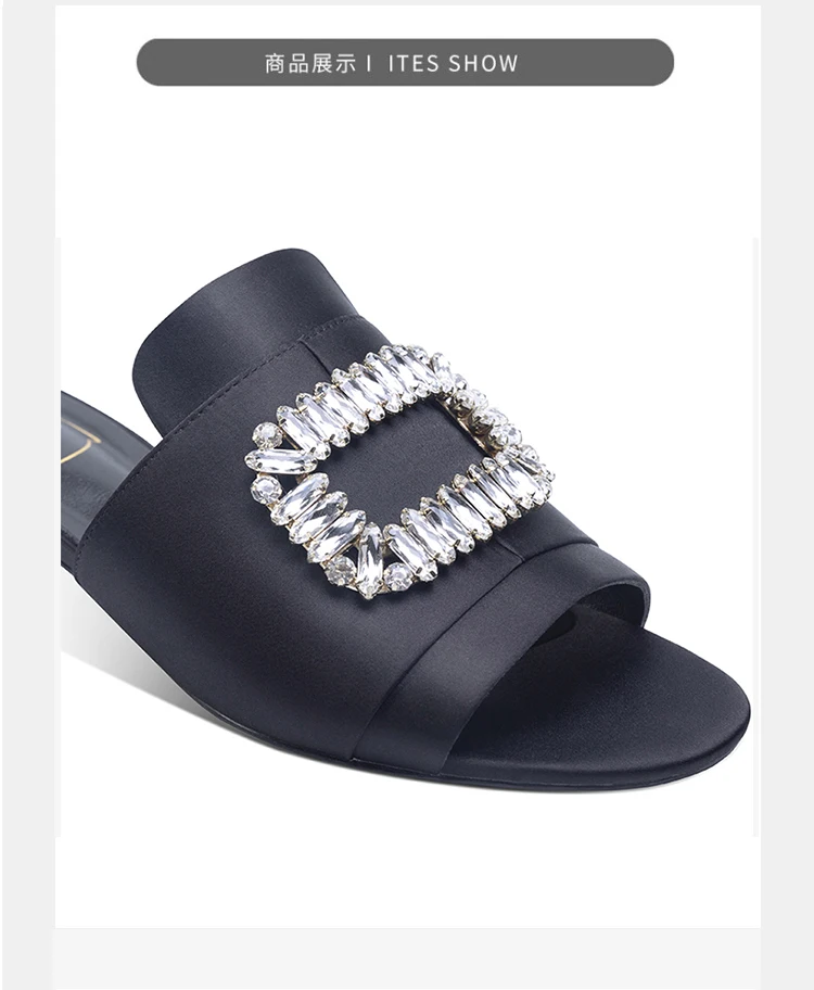 rhinestone Heeled sandals women’s sandals summer 2024 trend luxury Square heel Heeled Slippers High Heels shoes Silk and satin