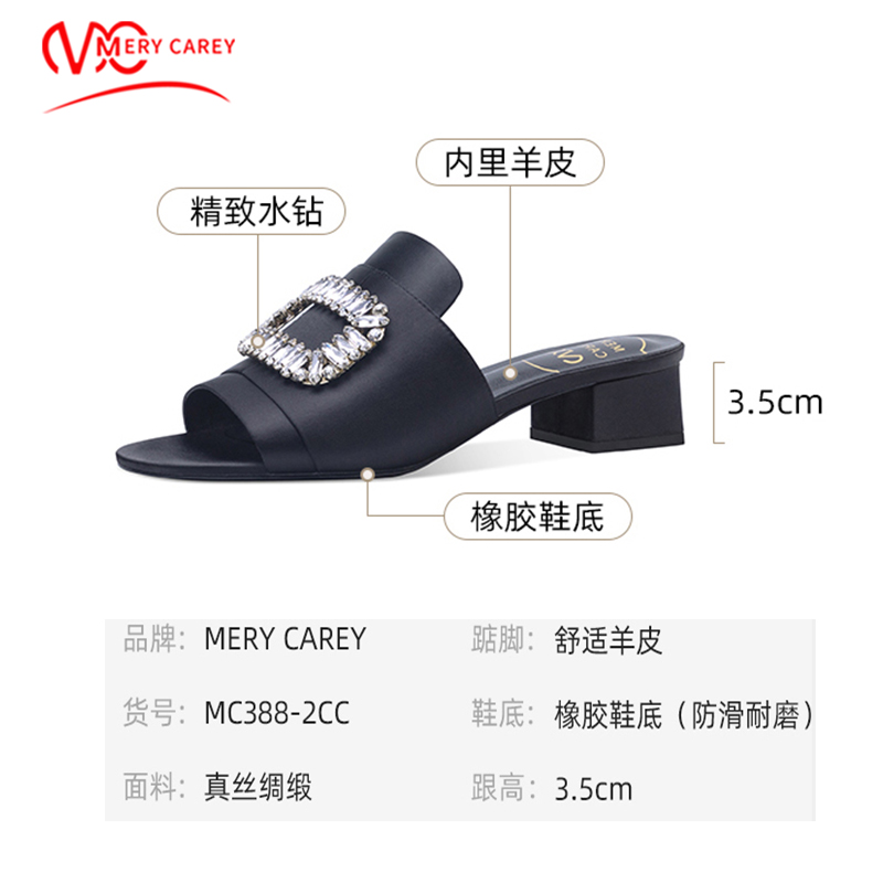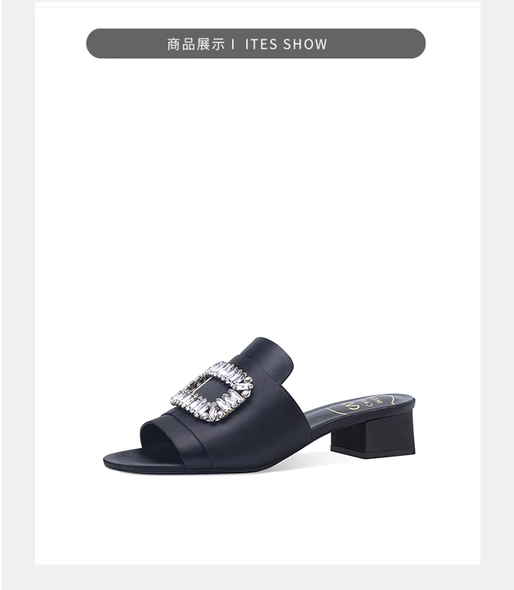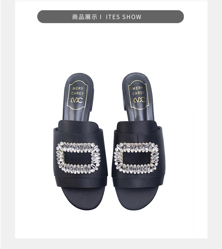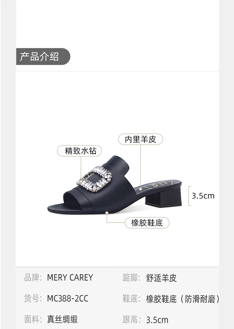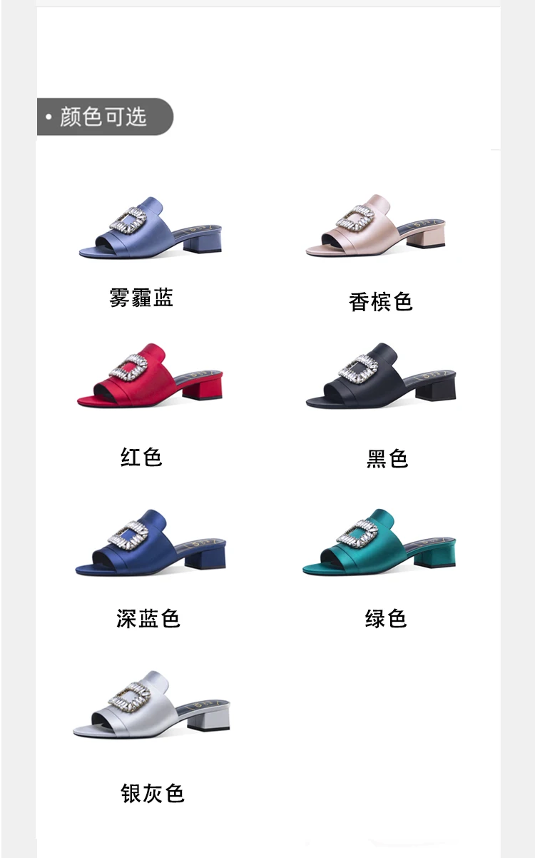 rhinestone Heeled sandals women’s sandals summer 2024 trend luxury Square heel Heeled Slippers High Heels shoes Silk and satin