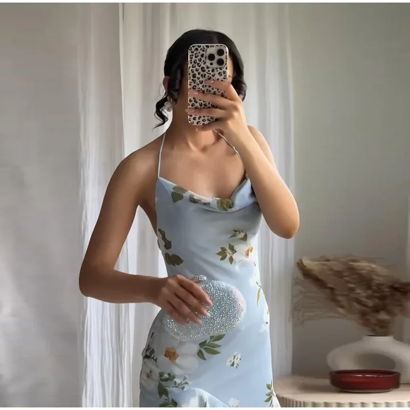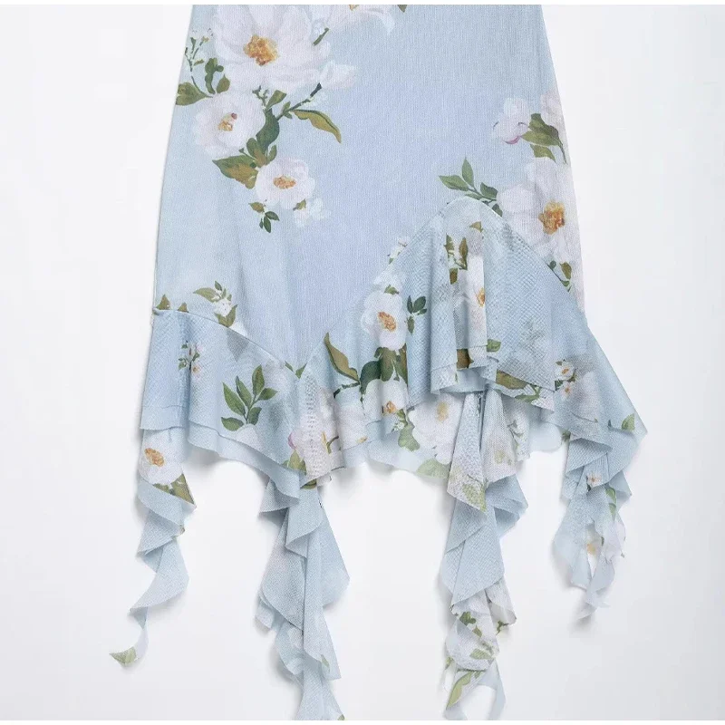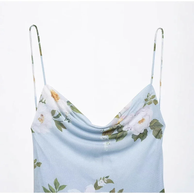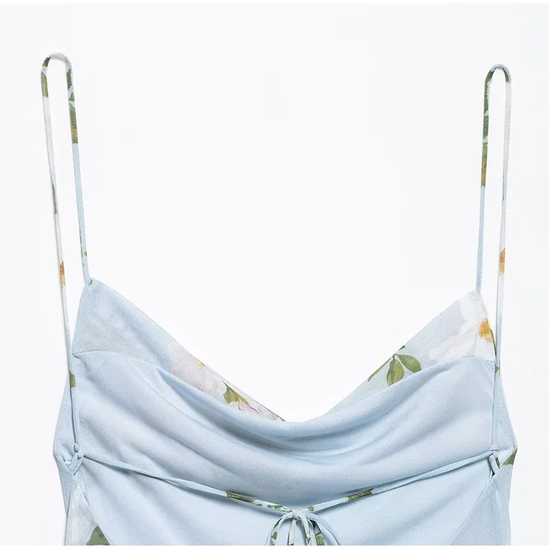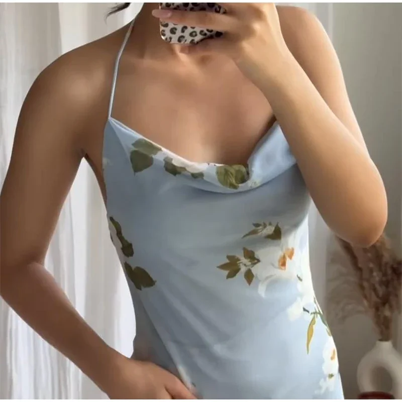 Ruffled Floral Printed Sling Mini Dress Women Spaghetti Strap Sleeveless Backless Short Dress Lady Summer Holiday Vestidos