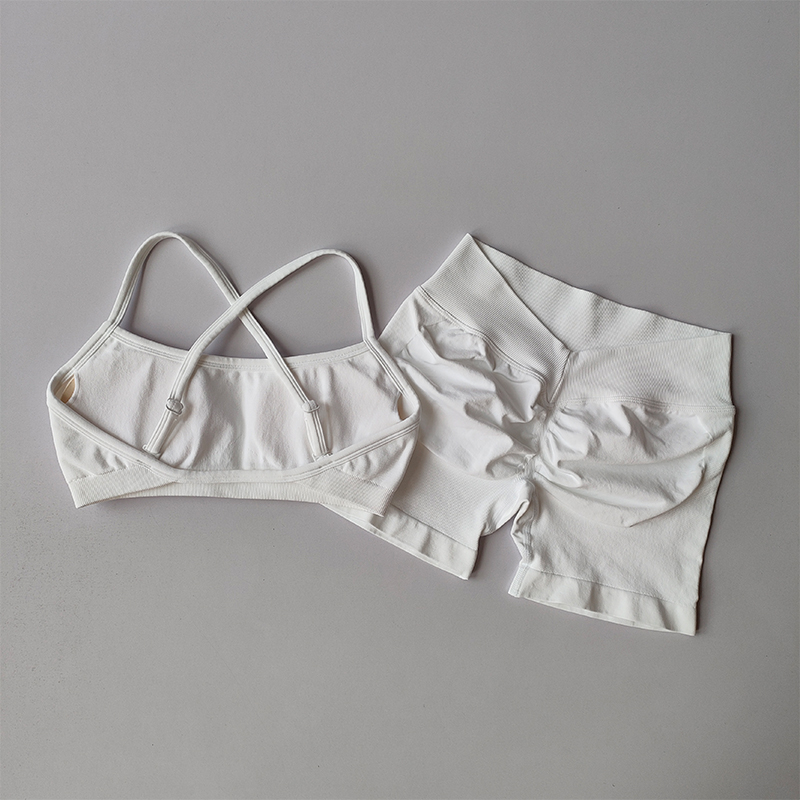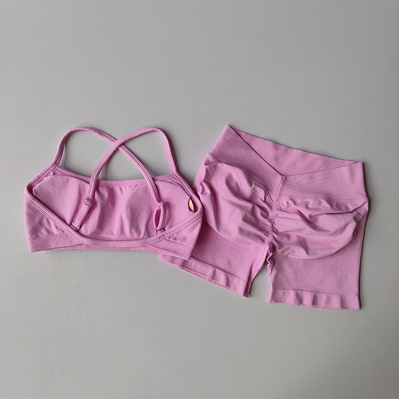 Seamless Yoga Suit High Elastic Peach Hip Lifting Sports Three-quarter Pants Fitness Shorts Pilates Sports with Chest Pad Bras